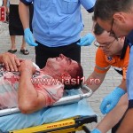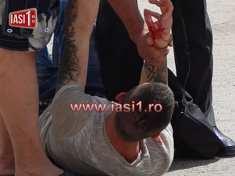 In urma atacului victima a fost luata cu ambulanta stabila si constienta ( n.r. medic ambulanta ) iar atacatorul la scurt timp dupa atac a imobilizat de cetateni , incatusat si dus la postul de politie Holboca de catre politisti.