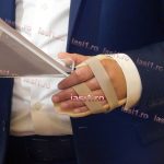 Mihai Chirica , primarul Iasului, s-a prezentat la conferinta de presa din data de 15 noiembrie cu membrul superior stang , mana plus antebrat , imobilizat intr-o atela cu fasa elastica.